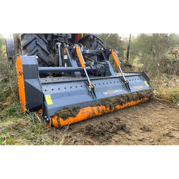 The models TGH and TMH from TMC Cancela are mulchers that have been developed to provide to the customers a maximum flexibility in all kind of works due to the high versatility that gives the rear hood with the incorporated roller. With this configuration these are machines that are suitable to work on high pruning beads, semi-forestry and agricultural applications such as cleanings in farms and in green areas.