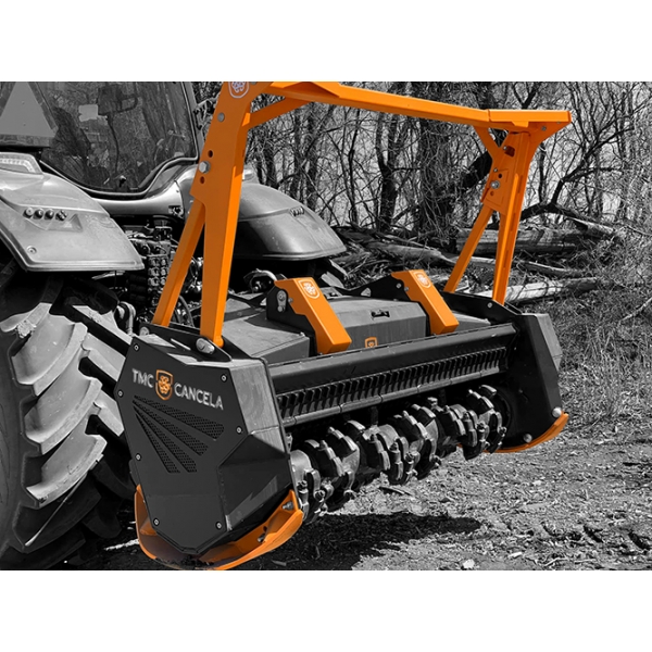 Specially suitable for mulching branches and low trees, including remaining stumps after the felling of trees. The degree of mulching is very high, often arriving to get sawdust. The presence of stones in the ground does not prevent a proper operation of these mulchers. They incorporate long lasting replaceable hammers, made of special alloys and hard metal, designed and patented by TMC CANCELA. Its special design provides an excellent material penetration and a long lasting.