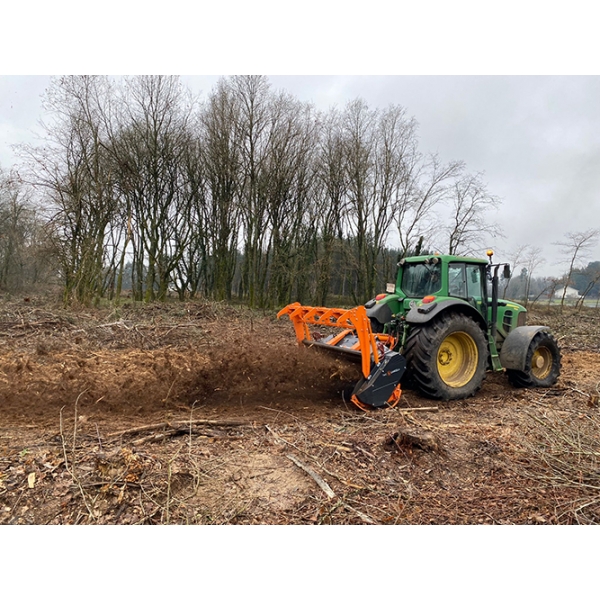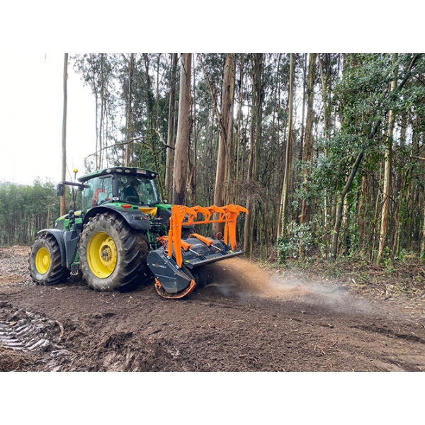 Specially suitable for mulching branches and low trees, including remaining stumps after the felling of trees. The degree of mulching is very high, often arriving to get sawdust. The presence of stones in the ground does not prevent a proper operation of these mulchers. They incorporate long lasting replaceable hammers, made of special alloys and hard metal, designed and patented by TMC CANCELA. Its special design provides an excellent material penetration and a long lasting.