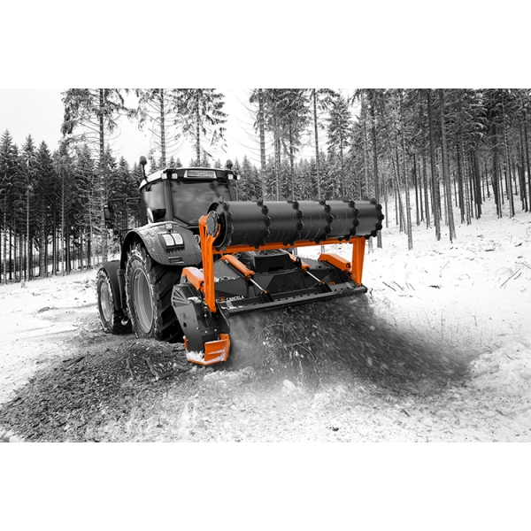 Mulcher that integrates in one sigle unit the possibility of milling depth stumps, stones and roots (up to 30 cm) as well as forestry mulching on surface. It´s made with Hardox® coatings and a two-speed specially designed gearbox allowing to alternate the rotor speed simply and effectively depending on work to be done. The MPK mulcher is the ultimate tool for the creation of farmable agricultural land or regeneration of forestry soil at the lowest cost, reducing the impact of carbon and maximizing productivity.